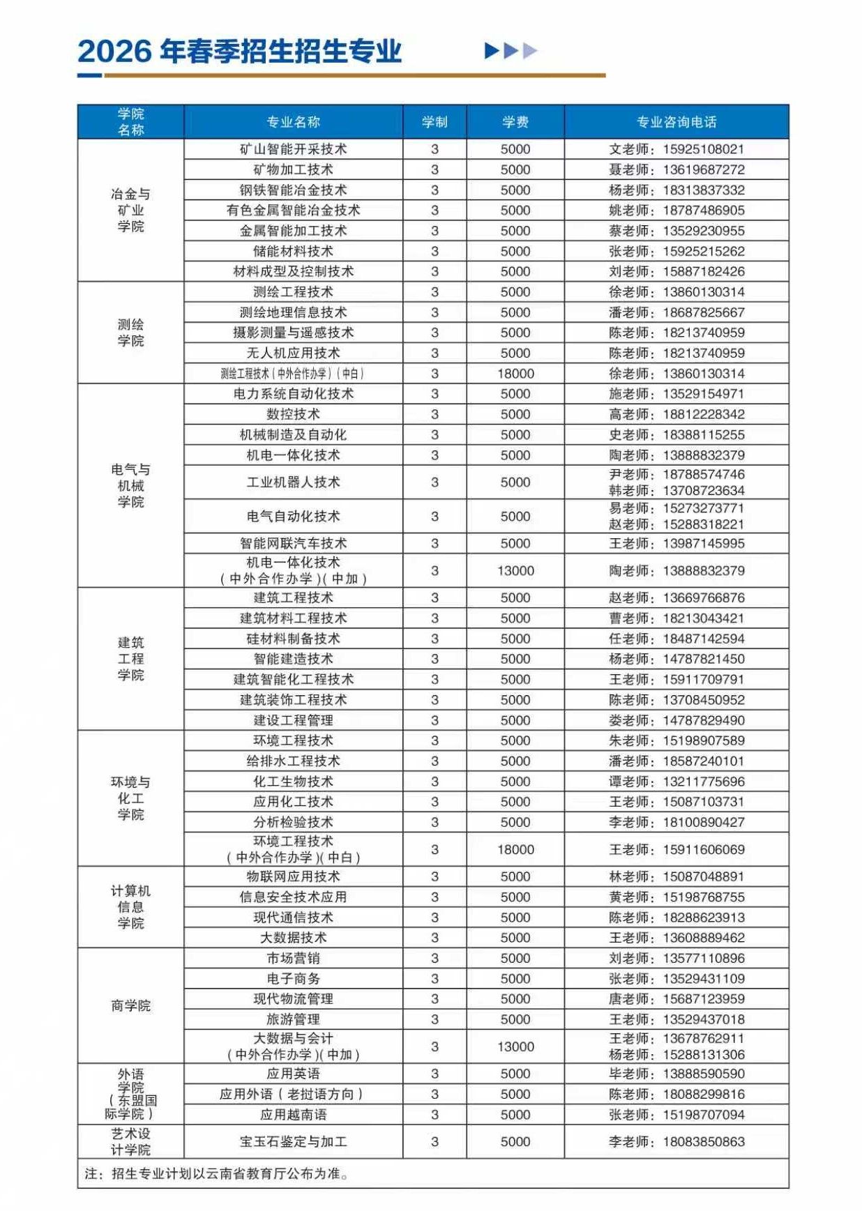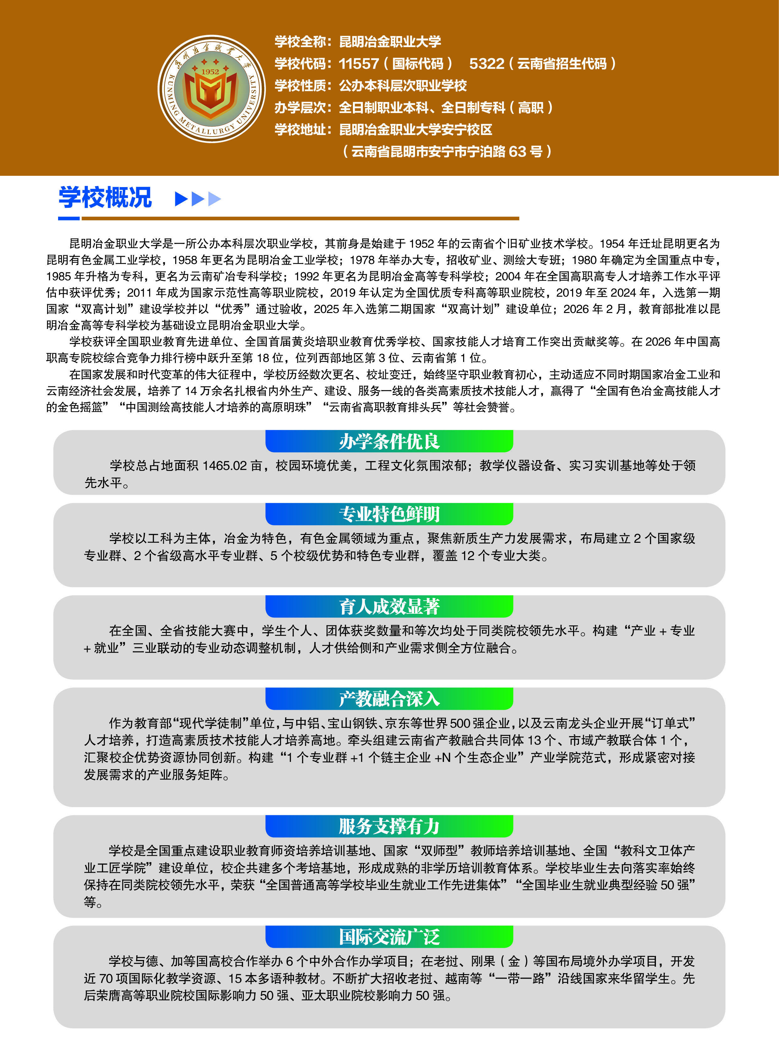 2026年昆明冶金职业大学春季招生、职教高考招生简章